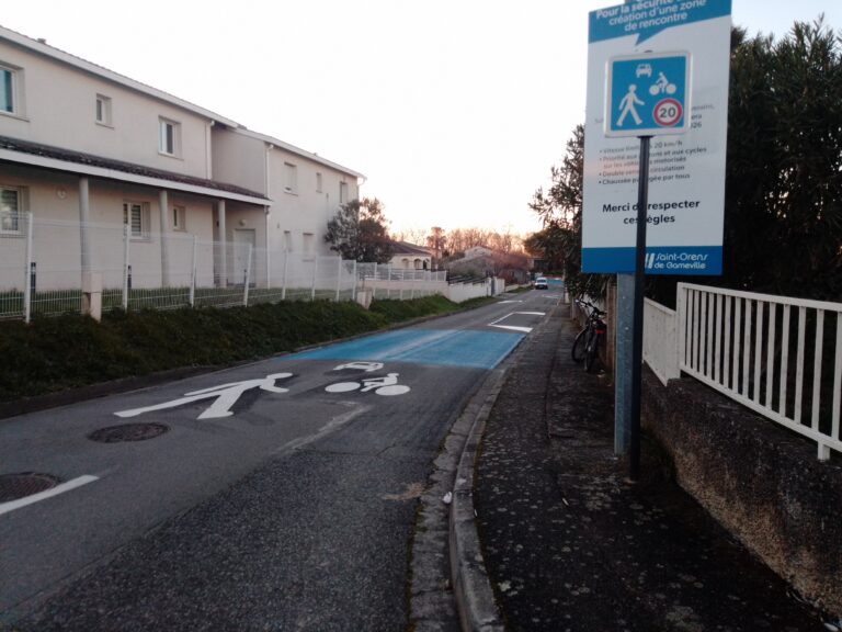 Le nouvel aménagement de la rue du Bousquet en zone de partage a vu le jour. La vitesse y est maintenant limitée à 20 km/h. La dangerosité de cette voie
