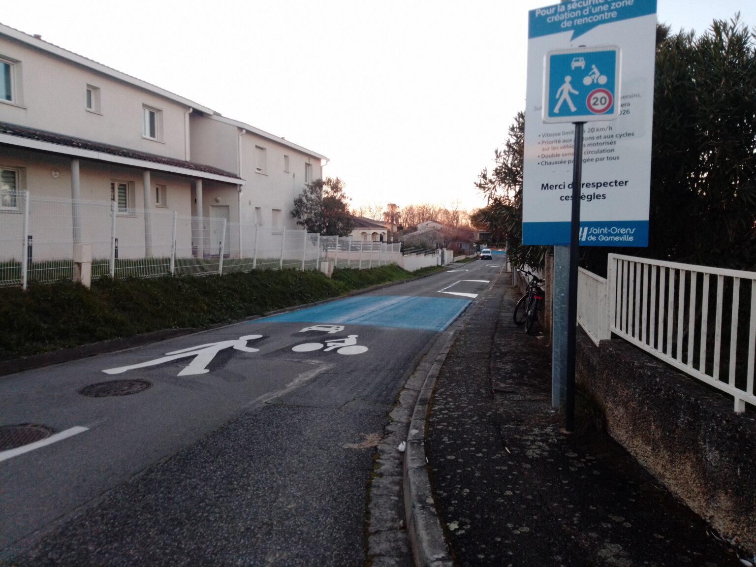 Le dispositif a été entièrement revu pour abaisser la vitesse à 20 km/h, la rue étant classée zone de rencontre, la priorité étant donnée aux piétons et aux cyclistes. Reste à voir l’efficacité du dispositif, particulièrement au niveau du virage.