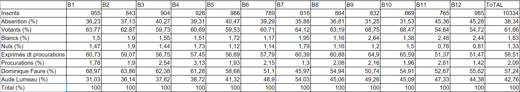 Les résultats de l’élection municipale se seront faits longtemps attendre en cette soirée du 16 mars 2026. La liste Continuons ensemble pour St-Orens, menée par Dominique Faure, l’emporte nettement sur St-Orens vraie, dont la tête de liste était Aude Lumeau-Preceptis, avec 57,24 % des suffrages exprimés.